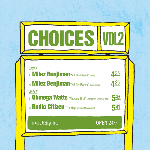 The Ubiquity Choices EP series features multiple artists, all exclusive tracks - all killer no filler.  Tunes are one-off collaborations, exclusive mixes, sneak peaks at future Ubiquity albums and new joints collected from artists around the world.  All 100% DJ friendly.  This first EP sold out quickly on 12” single.  Volume II will appear in the new Ubiquity 12” jacket, and will also be simultaneously available for download